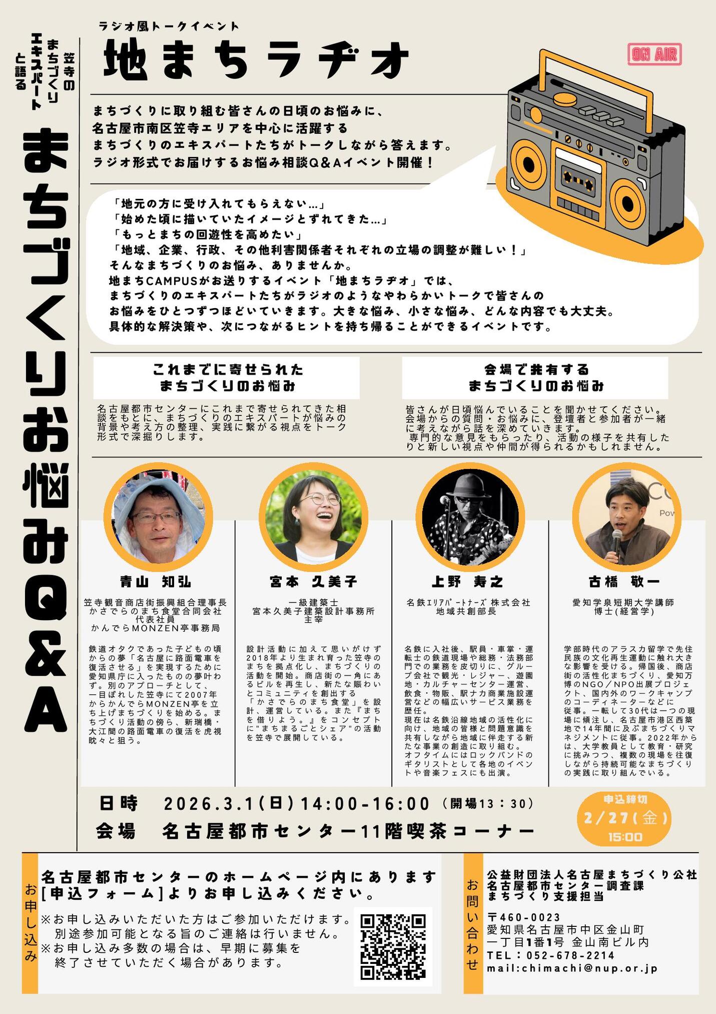 まちづくりのお悩み相談をラジオの公開録音風にお届けします。